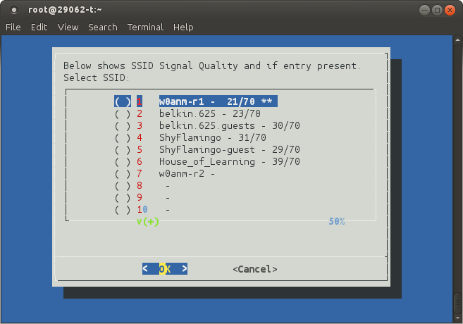 Select your wireless access point and give the passphrase. It will then give you further instructions and ask you to disconnect the wired connection. When the system is rebooted it will be using the wireless connection.